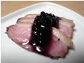 | そして今日の主役は合鴨ロース。 冷凍されて送られてきたこの合鴨ちゃん。 センチュリーハイアット東京のオリジナルだけあって、おいしそー。 黒胡椒風味と味噌風味の2品送られてきて、今日は黒胡椒の方を食べました。 鴨といえば、ベリー系のソースと相性良しだから、 冷蔵庫からブルーベリージャムを取り出してっと……うまうま〜! |