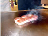 牛フィレ肉を焼いています。 鉄板焼きを食べに行くと、シェフの手さばきに見とれてしまいます。 この後、〆のガーリックライスのためにガーリックを香ばしくまんべんなく焼き上げていくのを見ていたら、いっぱいになったお腹も再び活動をはじめました。 |