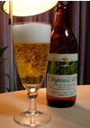 | 味は、普通の枝豆よりも濃厚で、変わった旨みが口に広がる…ん〜、うまい☆ 「やっぱりビールでしょ!」 という事で、2回目の茹で作業に入る前に、酒屋へGO! そして・・・今日、この枝豆のために選んだのは、「sapporo オーガニック100(ピルスナータイプ)」(右)と「エルディンガー・ヴァイスビア」(左)。 sapporoの方は日本人好みの苦味と喉越しのよさが黒枝豆の粘り強いモチっリとした食感を引き立てた。ドイツの方はフルーティーで優しい味わいが黒枝豆の独特の旨みを盛り上げてくれた。 |