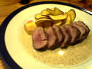 今日は「カワハギの肝ソースカルパッチョ」など、海のモノをつまみに白ワインを飲んだ後、「黒豚のマスタードソース」(写真右)をつまみに「PROMESSA