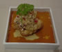 | “中華冷奴ピータンのせ” | “前菜5種” | “鱧の揚げ物” | “トマトの冷やし茶碗蒸し” |