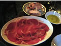 DE LA ERMITA 2001 JUMILLA”。 コチラはさっき飲んでいたものよりまろやか。「同じスペインワインでも、こっちの方がすごく高いワインだろう」と思っていたら、500円しか変わらなかった・・・。 |
