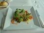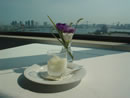 | ランチには遅い午後2時、お客は私1人。 ちょっと驚いたようだが、ボーイさんは優しく「この席がイイですよ」と窓側の席へ案内してくれた。座って程なく、降ろされていたブラインドが開け放たれた…窓の外はレインボーブリッジと東京湾! 「こんな場所があったなんて知らなかったです…」 「私が言うのも何ですが、穴場だと思いますよ」とボーイさん。 …車で来ているけど、まだ2時間以上あるし…で「グラスワインの白を下さい。」 この1杯の白ワイン・・・。とても心地の良い感覚に包まれる。 |