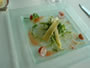 | 私がオーダーしたのは、自分で料理を3品選べる“ル・アーブルコース”。“真鯛のカルパッチョ”“鴨のテリーヌ”“仔羊のロースト”。中でも真鯛はプリっぷり! 料理までもがこの気分を盛り上げる。 |