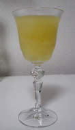 まず1本目は白ワイン。“Vire-Clesse 2000 Les Vercherres”。S氏が「桃を口に含ませたまま、ワインを飲み桃とワインのハーモニーを味わってください。」というので、ここに集まった6人全員がその通りに実行。いい大人が揃って桃と格闘している姿はかなり笑える図だった。 |