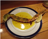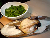 電車で少しワインを飲み、30分爆睡…短いけど、贅沢な旅でした。ぜひ今度はゆっくり滞在したいです。 T夫妻…呼んでくださって、本当にありがとうございました! …帰宅して一仕事終えた後、今夜の夕食です。 さっき真鶴の魚屋で買った干物とメカブで、旅の余韻にひたります。 うっ!この干物…おいしーぞ!海の旨みが身に凝縮されてザッパ〜ンって口の中が“海”で満たされます。骨ごとシャブリつく勢い…もっと買ってくれば良かったぁ…。 |