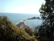 翌日、快晴。 海の見渡せるベランダで朝のお茶を飲み、真鶴岬へ軽くドライブ。穏やかな漁港と町並みに心が癒されます。 地元の人が行くという、普通の魚屋さん↓に立ち寄りました。 そこで、「エボダイ」と「アジ」の“干物”と地物の「メカブ」を購入…お土産店の半分の値で買えました。 |