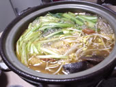 今日は、タイ風トムヤムスープで鍋です。 ハーブをたくさん使って・・・甘・辛・酸が美味しい☆好みの野菜、エビと白身魚&地鶏が入ってます。 このトムヤムの辛〜い鍋とオーストラリアの“こってり白ワイン”の組み合わせを考えていたのに、ワインはちょっと空振りです。 そう簡単に自分好みのテーブルワインには出会えないのかな。 |