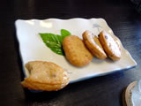 「割烹旅館まるなか」 。 漁港からは離れた場所にあるせいか、隠れ家的な雰囲気。 しかし、私たちが到着したのが午前11時。しばらくすると、どんどんお客が来て、すぐ満席になり、行列が出来るほどの人気ぶり…。 それもそのはず、お通しの自家製塩辛は濃厚で臭みが少なく、旨みたっぷり…自家製さつま揚げは(写真撮る前に齧ってしまいました…テヘ)揚げたてふんわり。 |