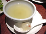しかーし今夜はサッカー日本×イランの重要な試合があるから、これ以上泥酔する訳にはいきません!…お水ください…(弱っ!) コースの〆は“かきまわしごはん”というメニュー。 豆乳仕立ての濃厚なスープに乾燥米(クスクスに似ている)を入れて、混ぜ煮立てる。お粥よりもぺったりとした所でとりわけて頂く…だーこりゃウマイ!クリーミーでもっちり☆ |