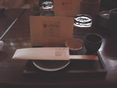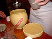 | この会では、各テーブルにお水と飲み残しを入れるための容器が用意されており、酔っ払い過ぎて味を楽しめなくならないように、しっかり気遣いされていました。 次は日本酒が主役の会が来月行われるそうです。できれば、次回も参加したいなぁ…。 〜番外編 2本目の焼酎の後、「日本酒好きな方いらしたら、少し飲みませんか?」と日本酒をだしてくれた。 このお酒、残念ながら、ここの店主さんのお眼鏡に適わなかったそうです…酒の好みは人それぞれ…私もいろんなモノに出会って、独自のこだわりを育てたい☆ |