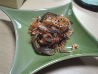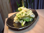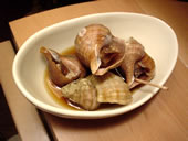 | 渋谷市場の魚屋さんの閉店間際はとってもお得。 お刺身、貝類などが半額以下になる。だいたい150円〜300円で新鮮なネタが手に入る。 今日は、青ツブ18個入り(250円)をGETしてきた。 一度沸騰したお湯で汚れを落として、醤油と酒、昆布を入れて煮る。 八百屋さんでも閉店間際の目玉、“うるい”2パック100円をみつけたので、“ぬた”を作った。 |