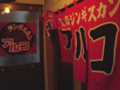 | さて今夜のご馳走は…ジンギスカン! 狸小路から少し入って奥まった所にある「ジンギスカン アルコ」は、表通りの「ラーメン味道 一徹」というお店から繋がって、ラーメン屋の奥のスペースを使ってこじんまりと営業している。 しかもこの「ラーメン一徹」は夜になると居酒屋としての営業がはじまるので、ジンギスカンを食べて(腹ごしらえ)→居酒屋に移動(本飲み)→ラーメン(〆)。というゴールデンルートが一軒で出来上がってしまうのだ。 |