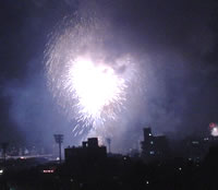| …花火が始まる頃には、すっかり酔っていました(笑) 隅田川の花火大会は、コンクールがあるので、どの花火が優勝するのか、毎年みんなで品評会をしている。私は「夜空に乾杯」という題名の花火で盛り上がった。“徳利”や“ビール”を模した花火は、完璧な感じがしなくて、その楽しいイメージは、今日の酔っ払いにピッタリ☆ 今年は風下になってしまったので、花火の煙で見難い時もあったけど、目の高さで上がる花火の迫力に大興奮!花火の香りが“夏”を感じるいい夜でした。 |