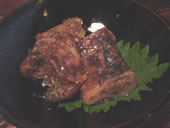 ジンギスカンにあわせたのは、シソ焼酎「鍛高譚(たんたかたん)」。普段は好んで飲む焼酎じゃないけど、店長さんにオススメを聞いたら出てきてしまった…うん、そう言われれば、このしょっぱめタレと甘めに感じる焼酎が微妙に合っているかなぁ…。 |