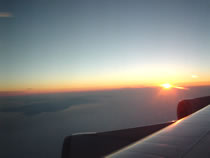 | 帰りの便は、行きとは大違いで、北海道ツアー帰りのオバサマ軍団とゴルフツアー帰りのオジサマ軍団、そして出張帰りらしきサラリーマンたちで満席。 私は夕食を食べる前にチェックインしてたおかげで、大好きな窓側の席を確保できたっ!よかったぁ☆ 沈む太陽を追いかけて上昇した機体が、ゆっくりと夕陽を追い越してゆく…はぁーっと一息。 おつかれさん 。 |