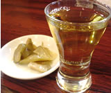 頼んだお酒は「竹葉青酒(チクヨウセイシュ)」。造血、解毒、消炎作用があるといわれる薬酒。アルコール度数が45度あるので、コレ一杯でも効きましたぁ! |