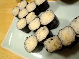 串の焼き物には、マグロのネギマ・ホッキ貝ヒモなどを甘しょっぱい醤油タレでいただきます。 そしていよいよお寿司へ。 トロサーモンの炙り・時知不鮭の皮・ウニ・オチトロ・・・そして〆は山ワサビの巻き寿司。 北海道ならではの食材を使った握りを思う存分堪能し、お腹いっぱい!ごちそうさまでした。 バリの挙式・札幌での披露パーテイー、大成功でよかった!お兄さん・お姉ちゃん末長ーくお幸せに☆ |