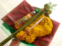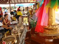 最後に、見た目ジュースのようなオイルを自分の生まれた曜日のお釈迦様像の前にあるオイルランプにたっぷり注ぎ入れます。 |