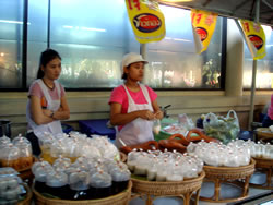 今日は最終日。 朝イチから仕事して、深夜のフライト。 バンコク郊外の仕事場の隣りの家には、バナナ(写真左上)がたわわ実っています。ここに来てやっと南国にいるのだと実感。。。 仕事場にはたくさんのお菓子や、飲み物が用意されていました。(写真右上はその一部)中には「コレなに?」っていうものも…(笑) 夕方に終わって、超特急でスーパーマーケットへ…お土産買う時間なかったから、ここでとりあえず目ぼしいモノを物色。 スーパーの外では、空気を入れてプクっと膨らんだビニール袋に入ったお惣菜がたくさん並んでいました。(写真左) |