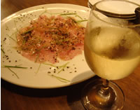 タイから帰った次の日から怒涛の“飲みラッシュ”! 10月26日。 タイに行く直前にOPENしたお友達のお店にやっと顔を出せました。 代沢「SANTE」…南仏で修行してきたシェフとは、渡仏する前に彼が働いていたお店で知り合ってから4年になる。 イケメンで、辛口でストイックな雰囲気…その“感じ”きっとモテるんだろうなぁ…。 ←写真は、白のグラスワインと「金目鯛の昆布〆カルパッチョ」。黒いツブツブは、“塩昆布のみじん”。“洋”にとらわれず“和”の手法を取り入れたメニュー作り。 女性一人でも、“カウンターでちょっと一杯”寄りたくなるお店です。 |