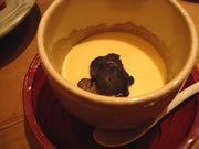 写真左は、豆乳プリンに黒トリュフが…あっさりと甘くないプリンと濃厚な香りのトリュフが絶妙! |