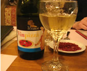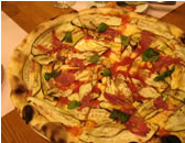 | 私たちは“ピザのためのワイン”という「Vinpizza bianco」をグビグビやりつつ、お目当てのピザを待つ。この「Vinpizza bianco」は、微発泡で軽い口当たり…厚いピザにはビールもいいけど、ここの薄い生地のピザには最高に合います。 そして登場したナスのピザは、口に入れるとナスのジュースがジュワっときて、本場ミラノのちょっとクセのあるサラミとトマトソースが…う、ウマイ! こりゃ期待以上だわっ☆さぁ次は何のピザ頼もうか? |