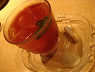 | 某居酒屋で、「地獄酎」を飲む。 以前、「ブラッディマリー」にタバスコとウスターソースを入れて飲むのが好きだと、ここに書いた事がある。空きっ腹の一杯目にもいいし、飲みの〆に持ってくると、ラーメンやらお茶漬けとかの深夜帯に食べては太ってしまう炭水化物を摂るより、ヘルシーで二日酔いの予防になる素敵な飲み物である。 さて この「地獄酎」は、かなりそれと似ているが激辛!…焼酎のトマトジュース割りにスゴイ量のタバスコと青唐辛子が入っているという、強烈な酎ハイ。 見えにくいかも知れないが、写真のように塩とカマンベールチーズがついてくる辺りは、ちょっと嬉しい心遣い。 喉から腹までピリピリしちゃうけど、結構いいじゃん☆ |