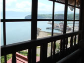 続いて、立ち寄ったのは、「祝津 鰊(ニシン)御殿」 明治時代、北海道日本海側では、海の水が銀色に変るほどのニシンが押し寄せていた。そのニシン漁で財をなした網元が立てた、大きな住居を“鰊御殿”といい、ここにあるものは、もともと北海道泊村(今では原発で有名)に立てたものを移築したもので、現存するものの中では最大級と言われる。 この建物の2階からは、晴れ渡った小樽・祝津湾が一望できる。 |