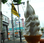 | ラーメンをお腹いっぱい食べて、新琴似にある「壱乃湯」へ。390円で露天温泉を堪能できるっていいなぁ。でも脱衣所がちょっと臭かった(汗) 昨日の酒を汗で出して、モヤシいっぱいのお腹を落ち着かせた、帰り道。 懐かしの「藤月」の前を通過したら、食べたくなっちゃった“ソフトクリーム”!こちらのお店は、高校時代・大学時代に寄り道して食べた懐かしい逸品。 ここら辺ではかなり有名な美味しいソフトクリーム屋さんなのです。 味は、水飴まったり感と濃厚な牛乳のクリーム感がいいバランスで、あぁなつかしや〜♪ |