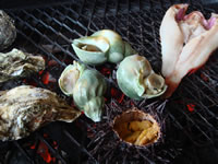 | 既に、下調理してある食材もあり、初めて食べる人や、子供でもわかりやすくて、ファミリー向け。 私的には、ぜーんぶ生で、新鮮だったら、もっとよかったのに…ちょいと残念。 でも名物の焼牡蠣は臭みがぜんぜんなくて、プリプリしてて、美味しかったなぁ…車じゃなかったら、日本酒をクイっとやりたい所なんだけどなぁ。 |