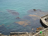 食事の後は、漁港近くで釣りキチさんたちとおしゃべり…猫よりも大きなウミネコさん(←写真)。 |