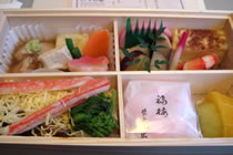 さらに、昼食の時間のフライトなので、お弁当が…石川県の料亭プロデュースという、このお弁当、何を食べてもしあわせ〜な美味しさ。今年は元旦からめっちゃ贅沢だ〜。 |
