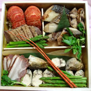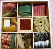 北海道で正月を過ごすと、朝から晩までエビ・カニ・イクラ・数の子…など、海産物を食べて、酒を飲む。という日々が続く。 |