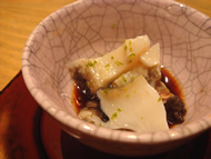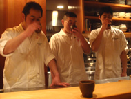 | いろんな種類の肴が出てくるから、肝心のお寿司はいつも数貫しか胃に入らない状態に…(笑) でも店長の津川さんや、スタッフのみなさんと、おしゃべりしながら頂くお料理は、楽しくって、美味しくって…すっごく気持ちのいい時間。 そこでいろんな話をするんだけど、時々、料理のコツを教えてもらっちゃうコトも…今日は“包丁の研ぎ方”のコツを伝授してもらいました。明日早速やってみよっと! |