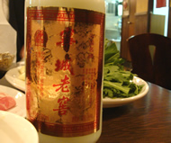 そして渋谷店には置いていない「内蒙古寧城老窖 白酒」を発見。白酒といえば…昨年12月に上海で体験して以来、その強烈な香りに魅せられはじめた私…思わずオーダーしちゃいました。 |