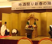 | 去る1月25日に「利き酒師認定式&地酒祭り」がおこなわれました。 認定式には、「出雲佐香神社」(出雲には、日本で初めてお酒が作られた土地という由来があります)から、宮司さまが東京へお越しになり、お祓いご祈祷をしてくださいました。 |