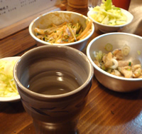 「くじらベーコン」「モツ焼き(タレ←美味い!)」「モツ煮込み」…美味しい居酒屋メニューをつまみながら、雪見酒。 |