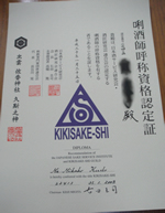 お神酒にお祓いした酒米を入れて、クピっと飲み干します。 認定証書は、一人ずつ壇上に呼ばれ、手渡し(ちょっと恥ずかしい)…卒業式を思い出しました(笑) 認定証を手にすると、かなり感慨深い…頑張ってヨカッタ…でもこれからが大切です。「利き酒師」として、日本酒の素晴らしさを伝えられるよう頑張ります! |