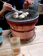 旅へ出ると感じる事だけど、「声をかける」…このシンプルな行為に、その店・その人柄が、よく現れると思う。 その声のトーンなのか、佇まいなのか、タイミングなのか…その全てなのか…「あっ…じゃぁ入ってみよう!」と思わせる気軽さのある説得力……に私はとても弱い(笑) お店の名前は、「日々波乗」。 おでんの温かい湯気に包まれた店内は、すでに老若男女がイイ具合にほろ酔いで……女一人で入ってきた私に、ちょっとした“冷やかし”なんかもあって、すぐにその場に居やすい空気をくれた。 おでん2種と、七輪(ハマグリとイカの口)を肴に「焼酎お湯割り梅入り」。店員さんやママさんも…隣りの若いカップルもイイ感じの距離感…居心地良くて、ついついピッチが早くなります。 こういう出会いがあるから、酒場っておもしろいんだよなぁ☆ |