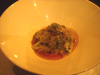 | 予約して伺ったら、絵葉書のメニューに名前を添えて置かれていました。そんなちょっとした心遣い…素敵です。 このお店で私の好きなメニューの1つは、この→「ズワイガニとアボガドのコンソメゼリー寄せ」。ちゃんとおまかせメニューに入ってました〜♪ 手頃な価格のボトルワインの設定もあり、ワインをガブガブ飲みながら、居心地のいい楽しい時間が過ぎていきます。 好きな場所で、楽しい仲間と……やっとゴールデンウィークらしい時間☆ |