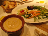 まずは、イタリアのスプマンテ・「プロセッコ」で乾杯。このお店の人気メニュー「バーニャカウダ」を齧りながら、思い出話に花が咲く。 次に「Domaine du HAUT PERRON GUY ALLION SAUVIGNON 2005」。 爽やかでフルーティー…お店の方のオススメワイン。ジューシーでフレッシュな味わいは、かなりツボ♪2本開けちゃいました(^^; |