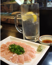 このサイトで、何度か取上げているネタですが… 私は生肉(^^;が、好きです。 今回は、いつからそんなに好きなったのか、思い返してみました。…あれは上京した時…10数年前に住んでいた武蔵小山のイタメシ屋さんでの「牛肉のカルパッチョ」との出会い。 そして、それまで白ワインしか飲めなかった私が、この「牛肉のカルパッチョ」と一緒に勧められて飲んでみたイタリアの赤ワイン。酸味のあるさっぱりとした「キャンティ」。 ハタチそこそこ田舎モノの私には、めっちゃインパクトありました☆ それ以来、“生肉好き道”、そして“酒類選ばず”の道がはじまったのです。 …で、今夜は、お仕事の帰りに下北沢「八峰」で、「鶏のたたき」と「チューハイ」(*^^*) 今じゃすっかりオヤジ飲みが板についた三十路過ぎ。 これぞ日本の生肉文化♪あぁ〜シアワセじゃ〜♪ |