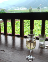 | 2軒目のワイナリーは、「シャトー酒折」。 勝沼から移動して小一時間…甲府に程近いこのワイナリーでは、醸造担当の方に、醸造の道具、醸造過程の細かい流れ、酵母の種類、そして蔵出しワインまで、特別に細かく教えていただきました。 一連の説明が終わった後には、恒例の試飲。 これがたまらんデス♪ |