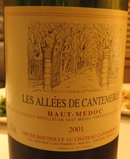 ALLEES DE CANTEMERLE 2001」…豚のローストに合わせて考えてくださった1本で、重すぎず軽すぎず、食中でもそのままでも楽しめるバランスのいいワインで。 |