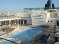 船の旅は、海と景色、さらに食事やアトラクションや施設を楽しむのも醍醐味かもしれませんが、私にとっては、乗船している他のお客さんや、スタッフのみなさんたちとの“出会い”と“ふれあい”がとってもあたたかくて、そしてとても楽しかった。 実は、この船でのお仕事は、私にとってかなりハードルの高いものでした。出発するまでの数週間は、いろんな意味でキツかった。 でもそんな“出会い”に助けられて、素晴らしい船旅になりました。 最終日の朝、部屋のベランダから見えた朝陽。 真冬の海の上…でも、とてもあたたかかった。 いつかまたこの船で、大切な人たちと旅をしたいな… |