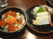 最終日。 あっと言う間の北海道旅。 最後は、千歳空港の1階にある「朝市食堂」。 ここは、レストランフロアではないので、値段もお手頃☆ 「いくら・トロサーモン・ボタンエビ・イカ刺し・味噌汁」がついて1380円…プラス200円で味噌汁を蟹汁にできちゃうのも嬉しい☆ さぁ東京に帰ったらお正月の準備です! |