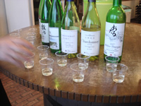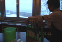 3日目。 2日間、道産ワインを飲み続けたので、せっかくだから、近くのワイナリーに行ってみよう!という事になりました。 キロロスキー場に近い朝里川にある「北海道ワイン」。 テスティングコーナーの窓の向こうは白銀の原野が広がっています。 案内してくれた渡辺さんに、「私、“日本のワインを愛する会”に入っているんです」と話すと、次々にワインを出してくれて詳しく説明をしてくれました。 |
