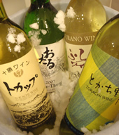 | 「道民還元」というワインは1本600円くらいで売られていましたが…なかなか美味しかった〜。 | ![]() |