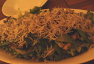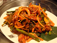 | 「コルベンイムチム」≒貝の和え物 コルベンイ≒巻貝…ツブ貝に似た味わいの貝と、ニンジン・キュウリ・タマネギ・ニラなどの生野菜を、酢コチジャンなどの辛いタレで合えたメニュー。 酸味と辛み、そして野菜と貝の甘み、サイコーです♪ 本場韓国で食べてみたいなぁ… |
